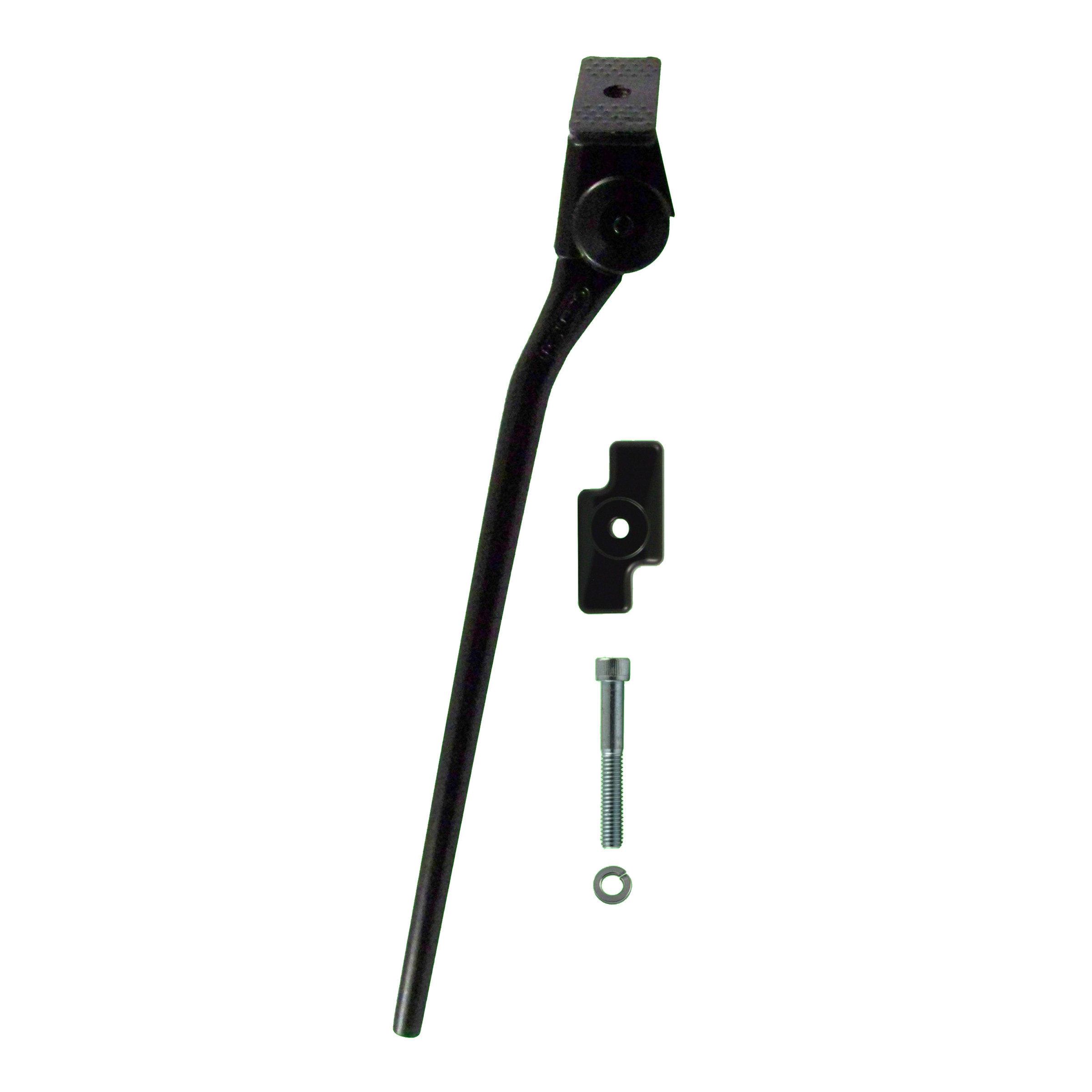 This kit includes a Greenfield center-mounted kickstand as well as a mounting plate that's designed with a cutaway to clear derailleur cables. The kickstand is lightweight, durable, and looks great on any bike. It's made of aluminum and made in the USA.
